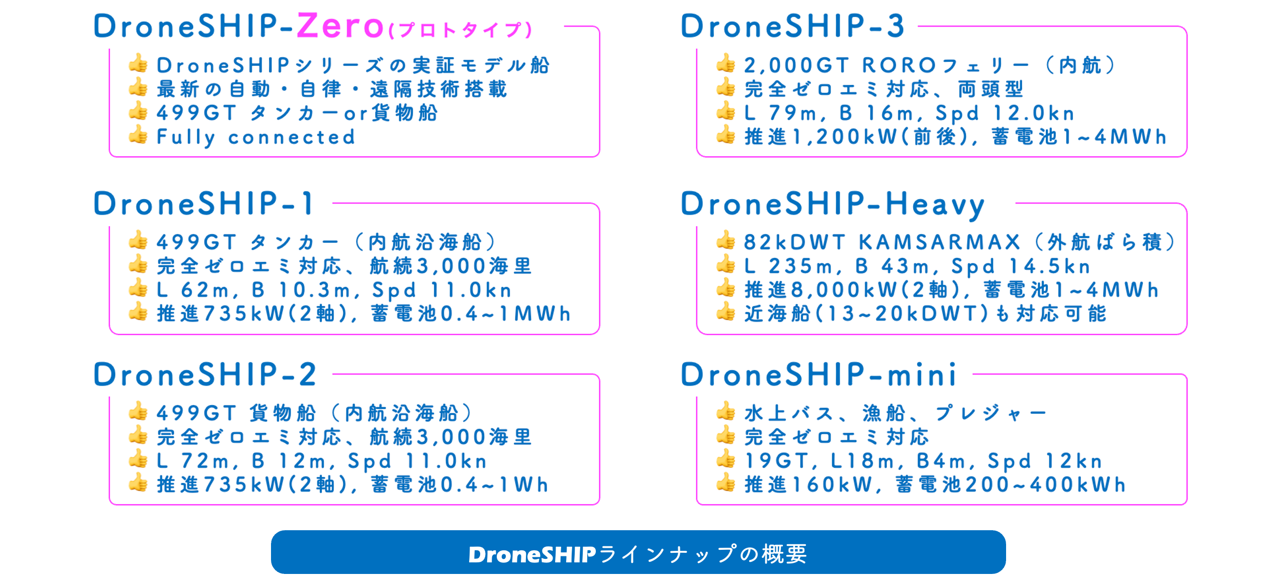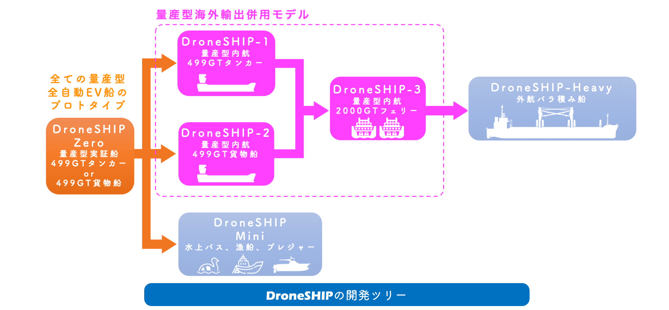 ■ DroneSHIPで開発される量産型全自動EV船のラインナップ