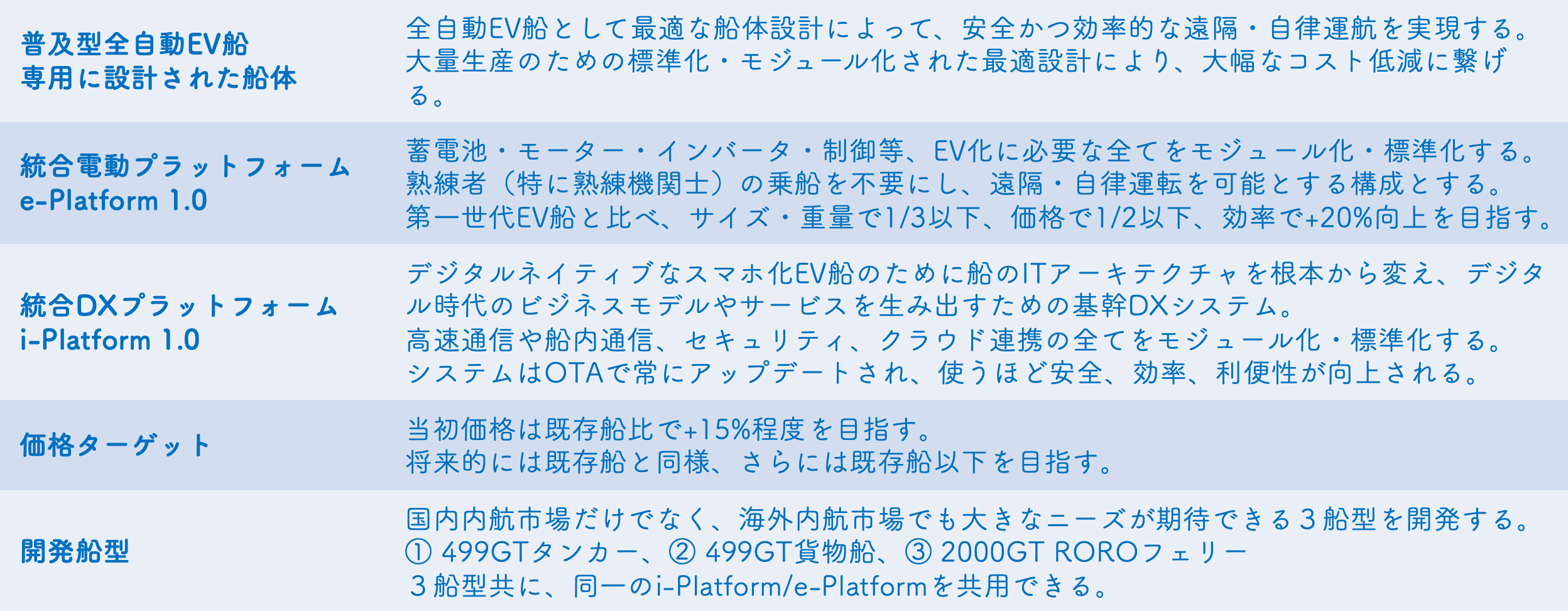 - EV船の価格をドラスティックに下げる ➡︎ 既存船比で15%以内、将来的には同等以下