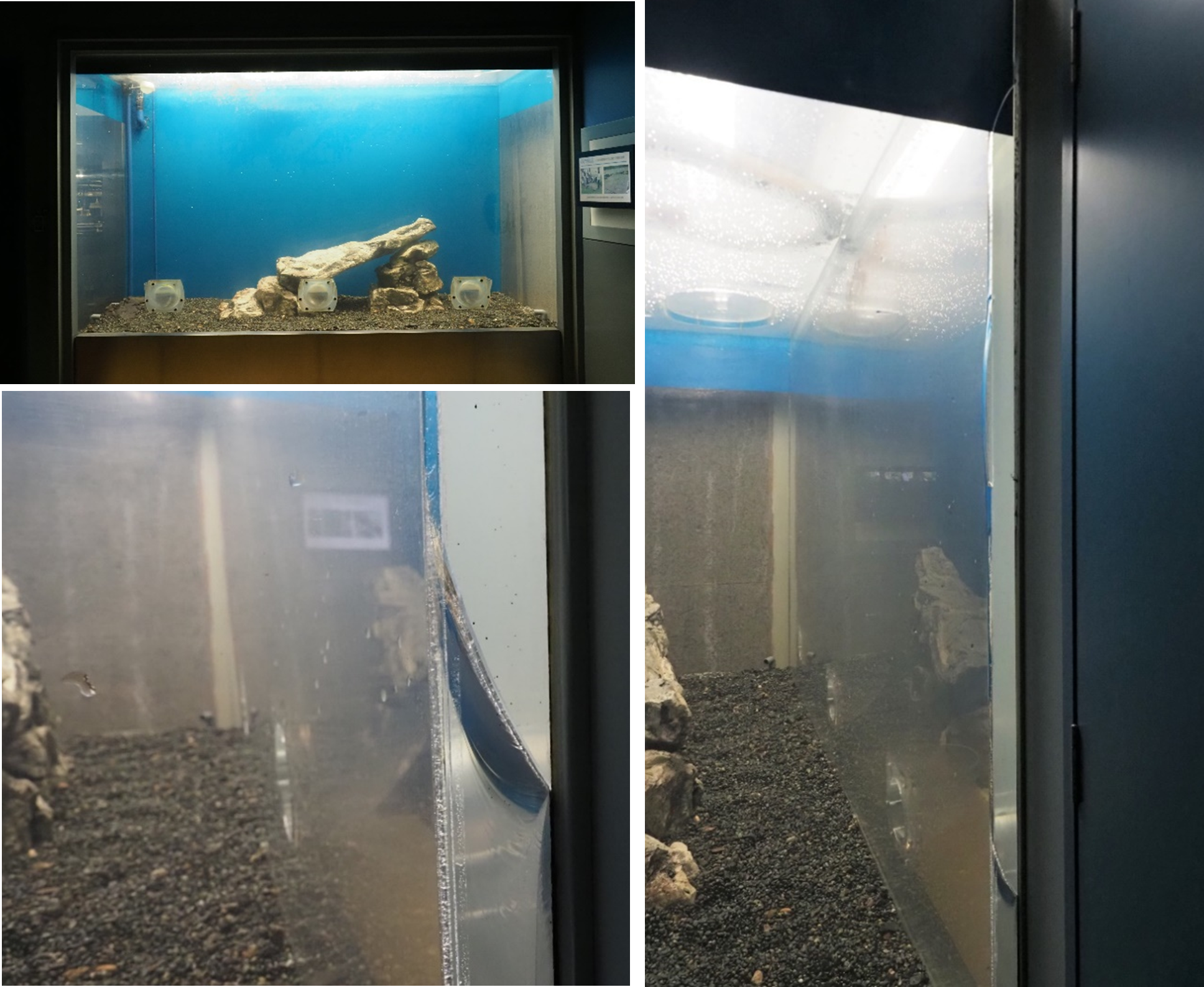 3月2日(木)17時頃、水族展示室のふれあい体験室(令和4年1月8日から閉鎖中)における水槽の日常点検を行っていたところ、ふれあい水槽の左側に亀裂が入っていることを確認しました。水漏れはなく、破断にも至っていません。原因については、現在調査中です。