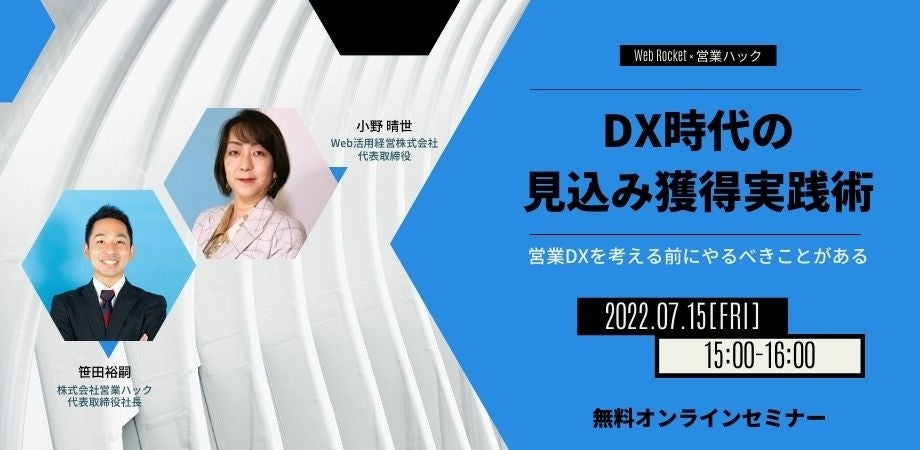 営業DX推進のポイントを、導入前に考えるべきことから具体的な見込み顧客獲得方法までご紹介します。Web活用経営株式会社代表取締役小野晴世様とのコラボセミナーです。