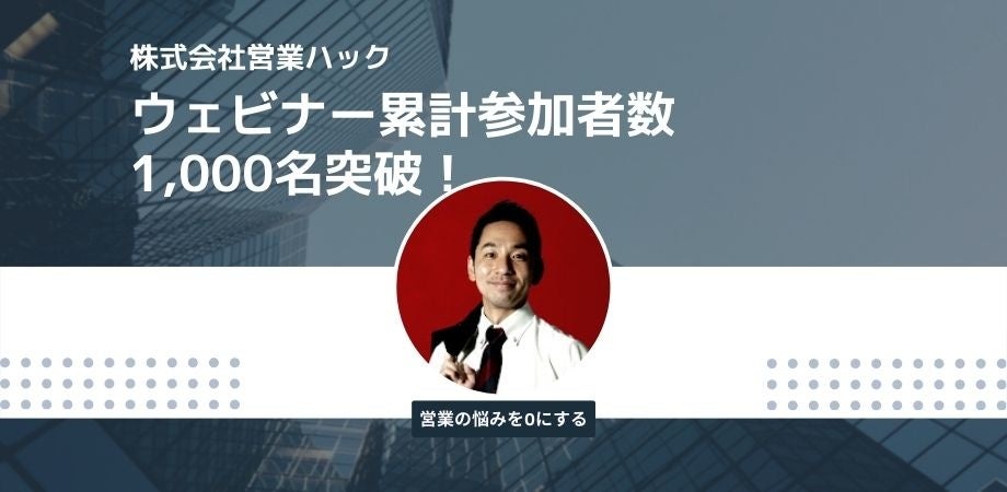 株式会社営業ハックでは、2021年から2022年6月までに約40回のオンラインセミナーを開催して参りました。「営業の悩みを0にする」というミッションのもと、新規開拓やテレアポ、オンライン商談、営業DX、ヒアリングのコツ、営業パーソンの育成方法など営業に関する様々なテーマを扱い、代表の笹田がそれぞれの解決方法や事例をお話させていただいております。この度、累計の参加者数が1,000名を突破いたしました。多くの営業パーソンにご参加いただいたことに心より感謝申し上げます。引き続きお客様から寄せられたお悩みを解決するため、ウェビナーを開催して参りますので、よろしくお願いいたします。