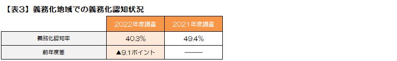 (注2)千葉県は県としては2022年度に義務化しましたが、県庁所在地である千葉市が2022年度より前に義務化していたため、本リリースでは本年度の新たな義務化地域としては扱っていません。