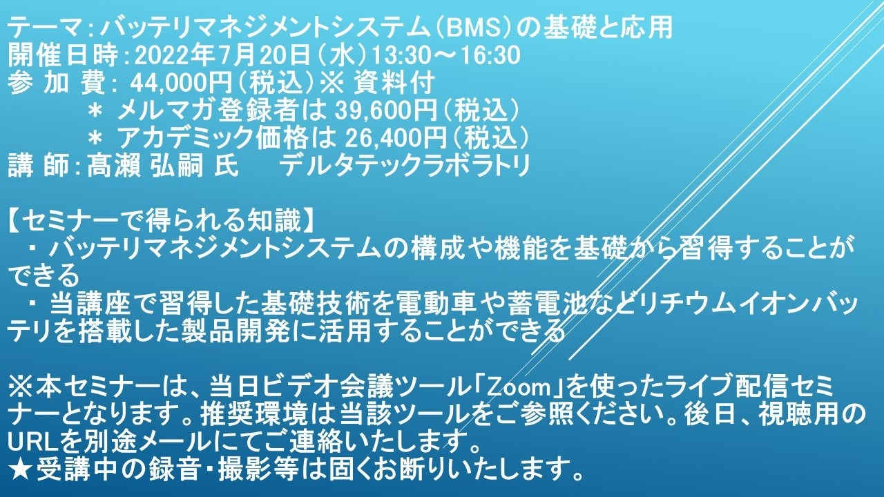 テーマ:バッテリマネジメントシステム(BMS)の基礎と応用