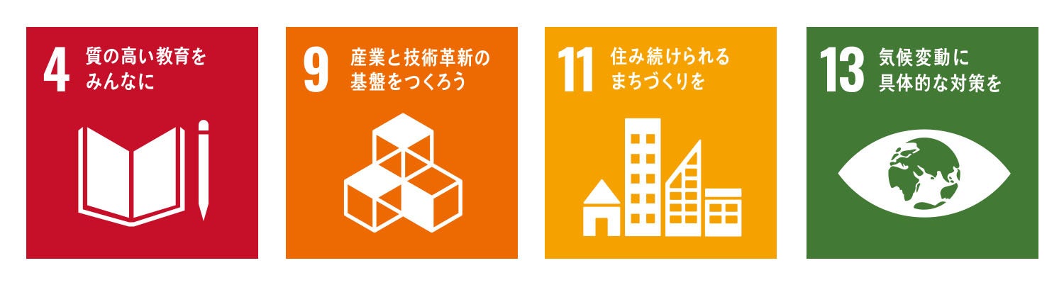 当該債券を購入することで、SDGsの目標4「質の高い教育をみんなに」・目標9「産業と技術革新の基盤をつくろう」・目標11「住み続けられるまちづくりを」・目標13「気候変動に具体的な対策を」等の貢献に繋がるものと考えています。