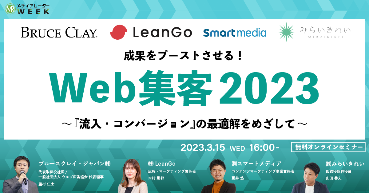 今回のセミナーでは、Web集客の強化を目的に、「自社サイトへの流入数最大化」と「流入ユーザーのCV最適化」のノウハウを4社が徹底解説します。