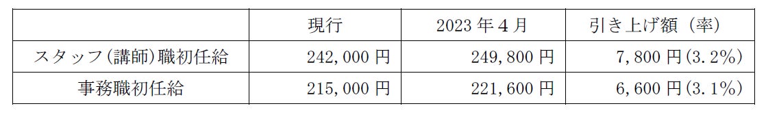 当社は、「本気でやる子を育てる」という教育理念のもと、学力伸長と志望校合格という進学塾としての本来価値を提供するとともに、物事に本気で取り組む姿勢、自らの力で課題を解決する力、チャレンジ精神、物事をやり抜く力、というその後の豊かな人生を送る礎となる姿勢と能力を身に付けるという当社独自の本質価値の提供により、教育企業としての成長・発展を推進しております。これらの価値を継続的に提供するため、現在、人材の採用・育成強化、人事報酬制度の充実、職場環境の整備に注力しておりますが、この度の給与水準引き上げにより、従業員の勤労意欲やエンゲージメントを更に高めるとともに、採用力強化を図ってまいります。
