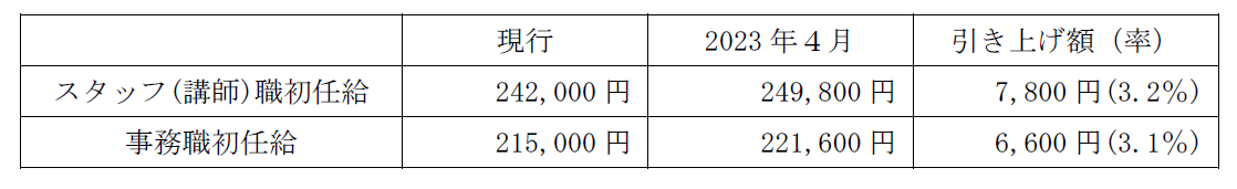 上記ベースアップに伴い初任給を引き上げます。