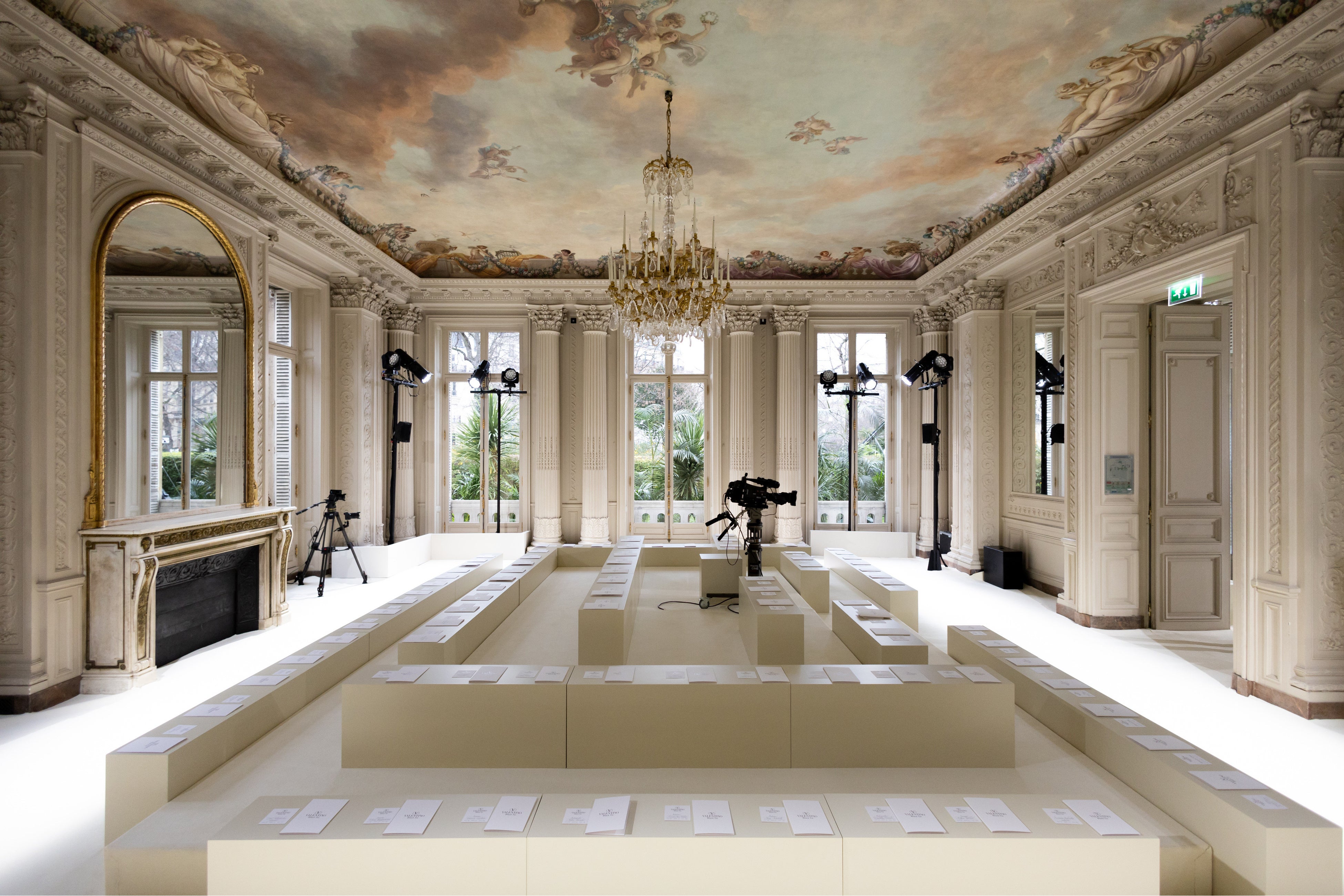 今シーズンのファッションショーは、1872年から1878年に建てられたパリの歴史的建造物であるオテル・サロモン・ド・ロチルドで開催されました。会場に設置された木製のベンチはショー終了後に回収され、メゾンが今後イベントやプロジェクトを行い際に資源として再利用されます。また、環境への影響を最小限に抑えるため、キャットウォーク全体を覆うモケットもリサイクルされる予定です。