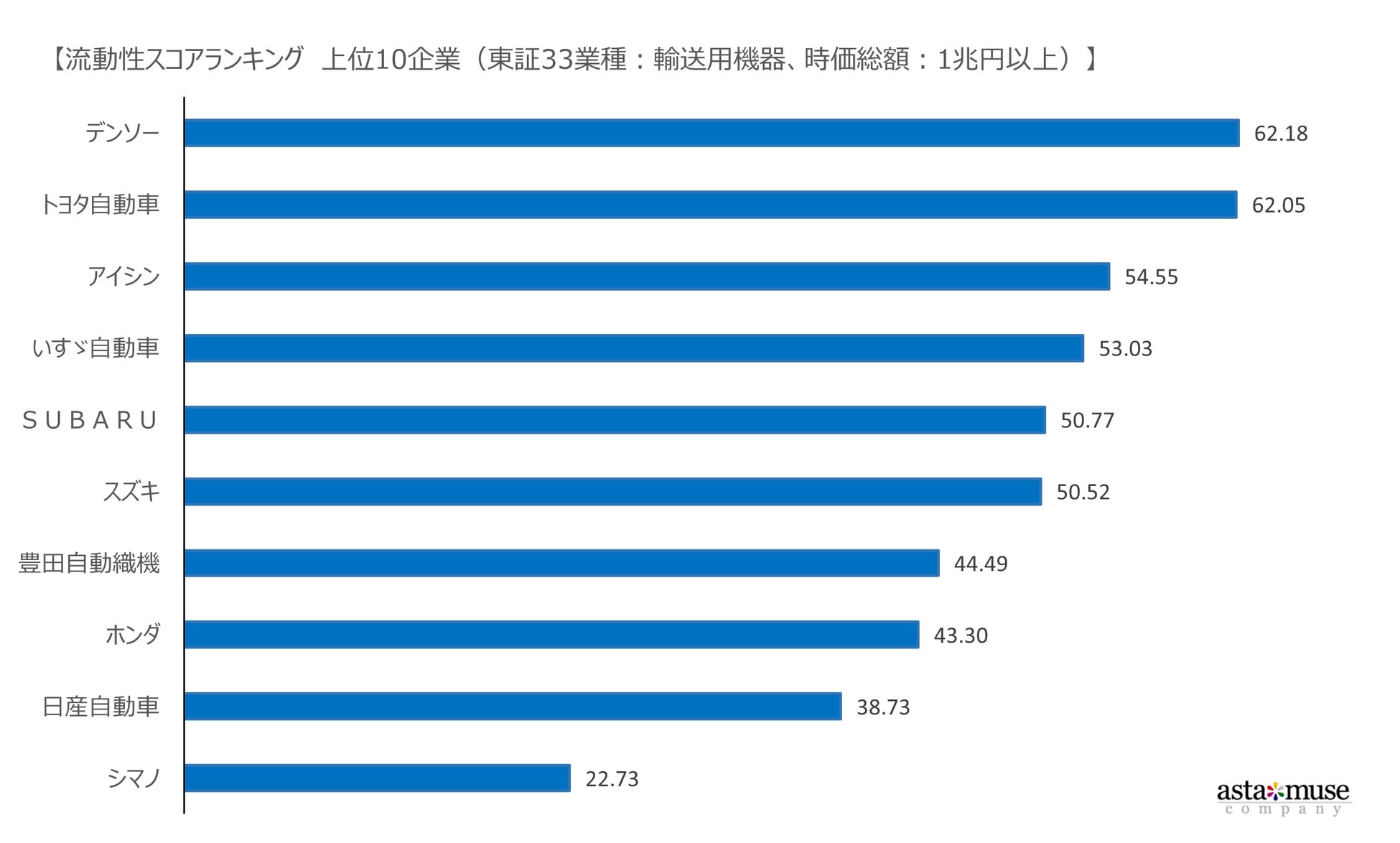 図1:流動性スコアランキング 上位10企業(東証33業種:輸送用機器、時価総額:1兆円以上)