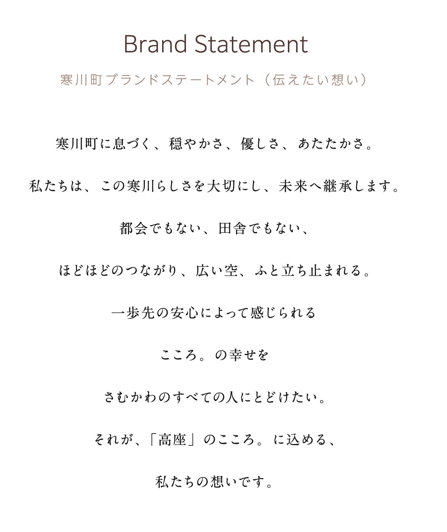 これを受けて、ブランドステートメントにより、町民の町ブランドへの共感を高め、職員の中にあった漠然としたイメージを具体化し、約束として受信者へ伝える、町の、行政の、職員みんなのメッセージとして作成しました。