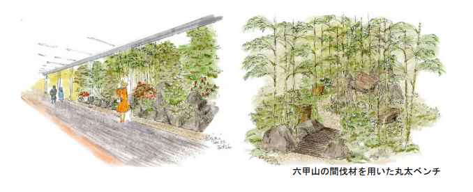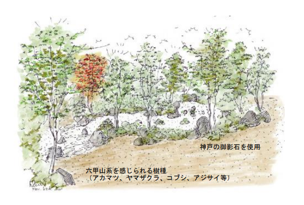 ・エントランス(六甲山の自然を感じる木々や水の流れを表現)