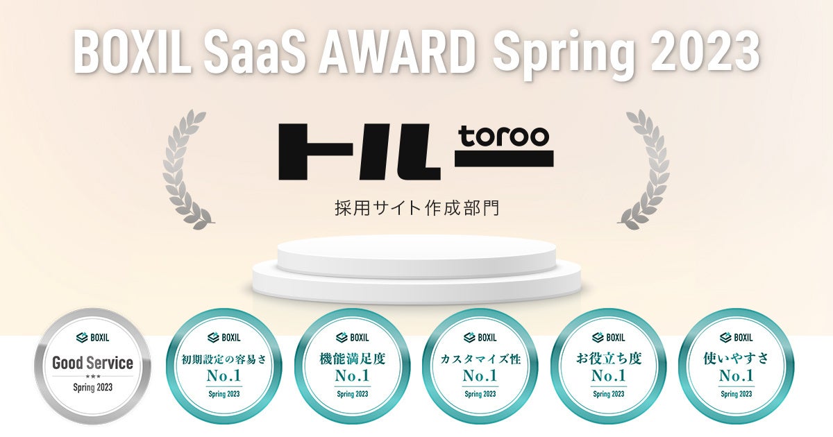「BOXIL SaaS AWARD(ボクシル サース アワード)」は、SaaS比較サイト「BOXIL SaaS(ボクシル サース)」を運営するスマートキャンプが、優れたSaaSを審査、選考、表彰するイベントです。年1回、SaaSの日(※2)を記念して発表される本イベントのほか、Spring、Summer、Autumn、Winterの四半期ごとにも、優れたSaaSが表彰されます。今回「トルー」は、この「BOXIL SaaS AWARD 2023」と「BOXIL SaaS AWARD Spring 2023」の同時受賞となります。