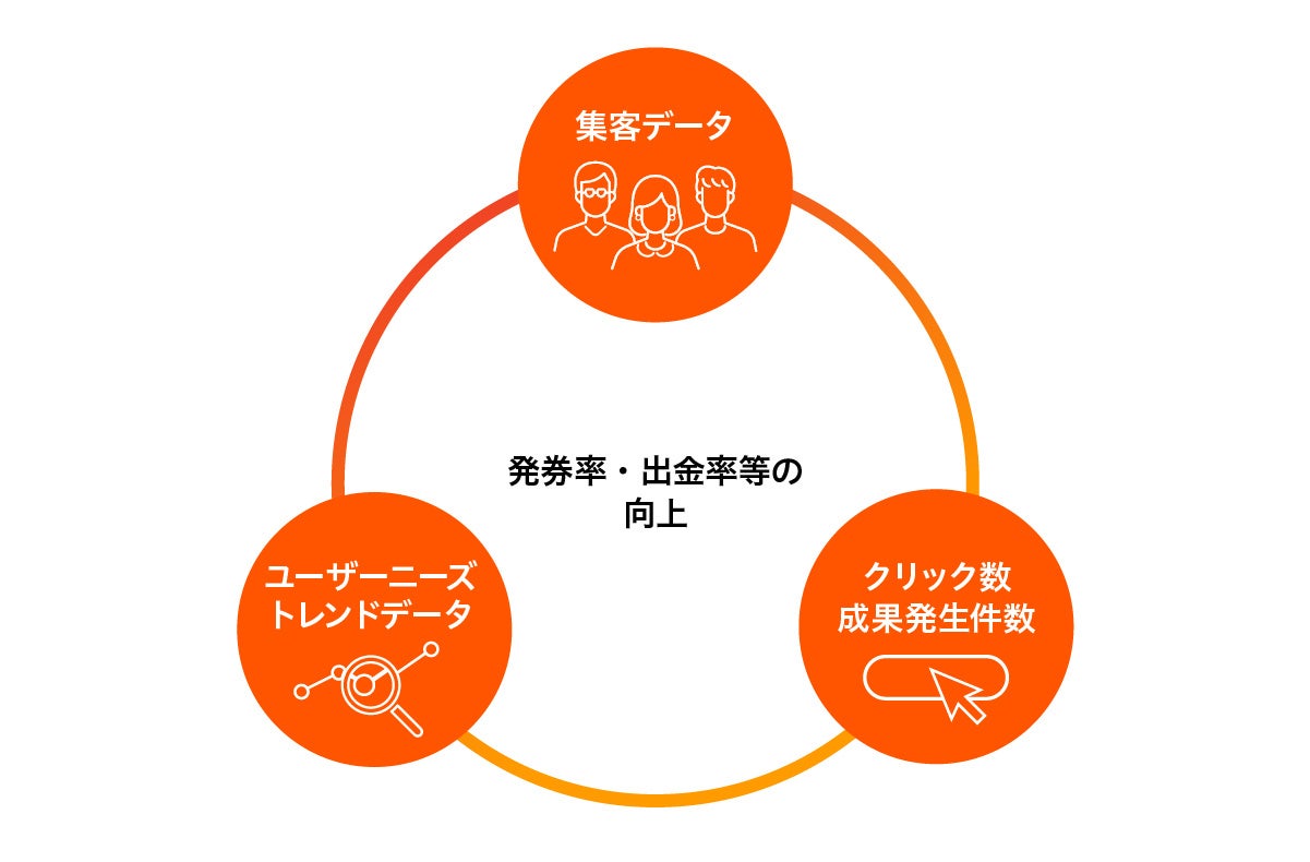 「JANet」では、生活者一人ひとりにマッチするサービス・商品をご紹介し、パートナー様・広告主様の事業成長に貢献できる本質的なアフィリエイト広告の実現のため、ステークホルダーの皆様のご協力の元、幅広いデータを取得する事で、分析環境の整備、向上に努めております。