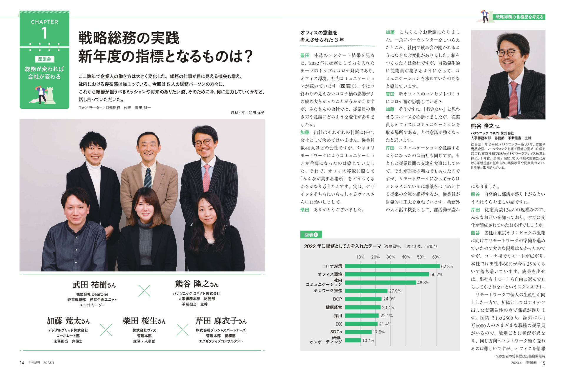 SDGs、DX、オフィス戦略、健康経営など、今総務部門が取り組むべき課題をピックアップ。第一人者へのインタビューや最新事例で深掘りします。