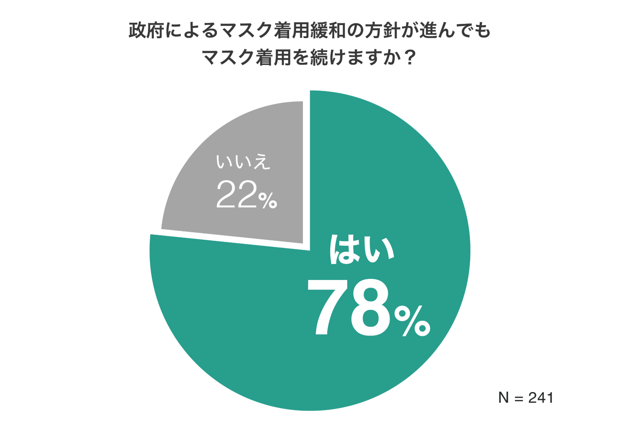 約8割の人がマスク着用緩和の方針が進んでも「マスク着用を続けたい」という結果に