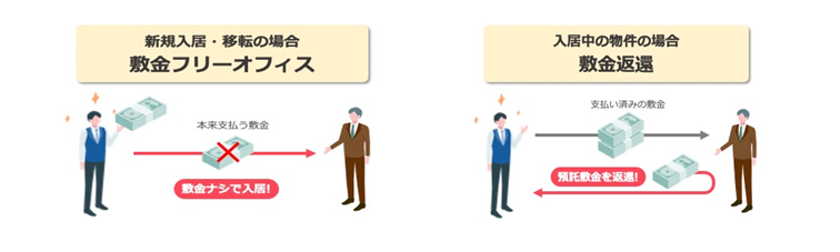「敷金フリーオフィス」と「敷金返還」で 敷金の有効活用を実現