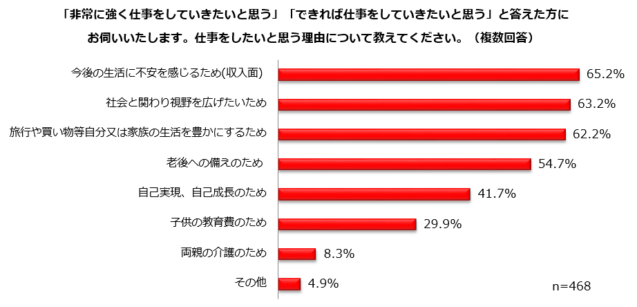 3.仕事をしたいと思う理由「今後の生活に不安を感じるため(収入面)」65.2%