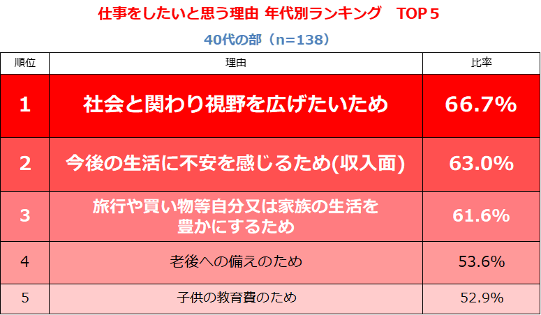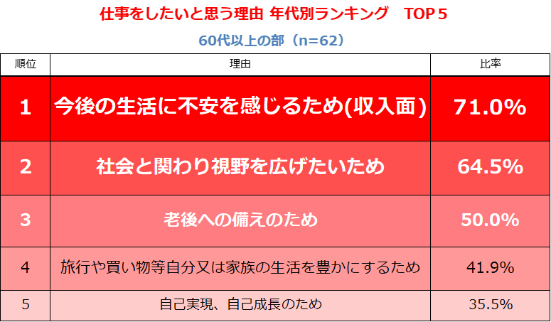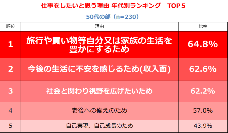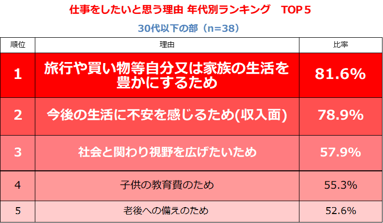 5.仕事をしたいと思う理由:年代別ランキング