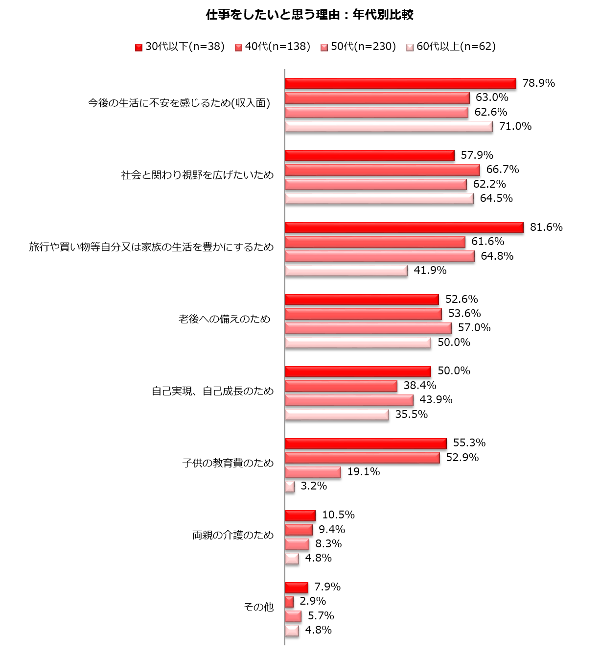 4.仕事をしたいと思う理由:年代別比較