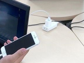 ブーメランデスク3台を向き合わせると、中央部分にスペース空間ができます。PCの電源コード、スマートフォンの充電器、LANケーブルなど、コード類を一箇所にまとめることが可能です。デスク周りや足元がスッキリし、配線周りのトラブル防止にも繋がります。