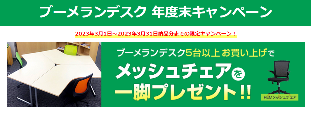 メッシュチェアをプレゼント!ブーメランデスク年度末キャンペーン