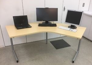モニターをデスク上に3台並べることができるうえ、椅子の向きを変えるだけでそれぞれのモニターの正面を向ける効率的なデザインです。机の端部分は荷物置き場になってしまうケースも多い長方形のデスクと比べて、作業スペースを広く確保できます。
