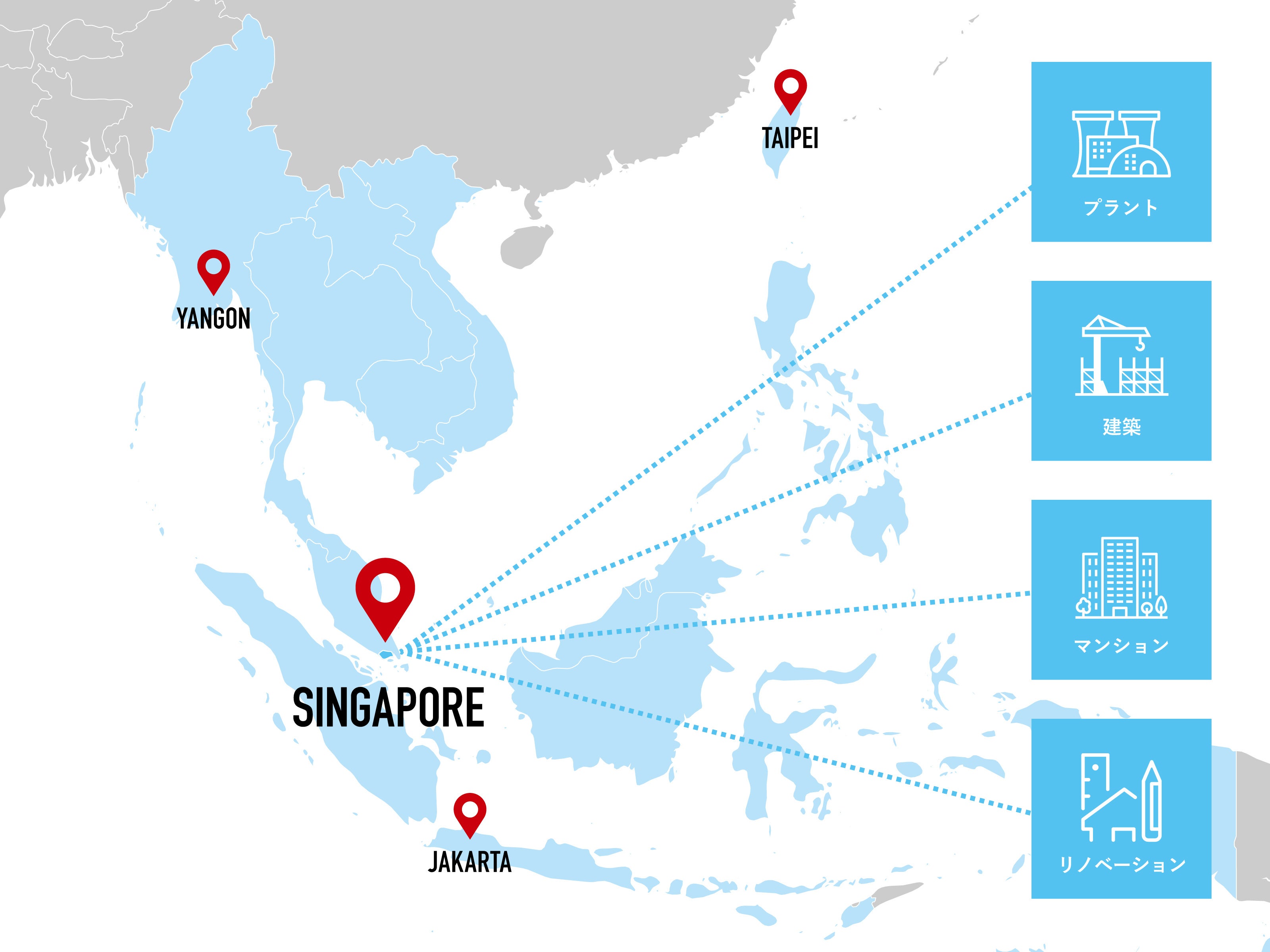 LTC Coatingsはシンガポールで、コンドミニアム・商業施設・ホテル等を対象とした外壁塗装を行う企業です。LTC Coatingsをカシワバラグループの海外展開におけるASEANのヘッドクォーターとして定め、当社の軸である4つの事業、インフラメンテナンス・マンション大規模修繕・建築・内装リフォーム事業を世界に拡大し、カシワバラグループがステートメントとして掲げる“世界を、広く、たくましく”を実現していくために、カシワバラグループにLTC Coatingsが参画しました。
