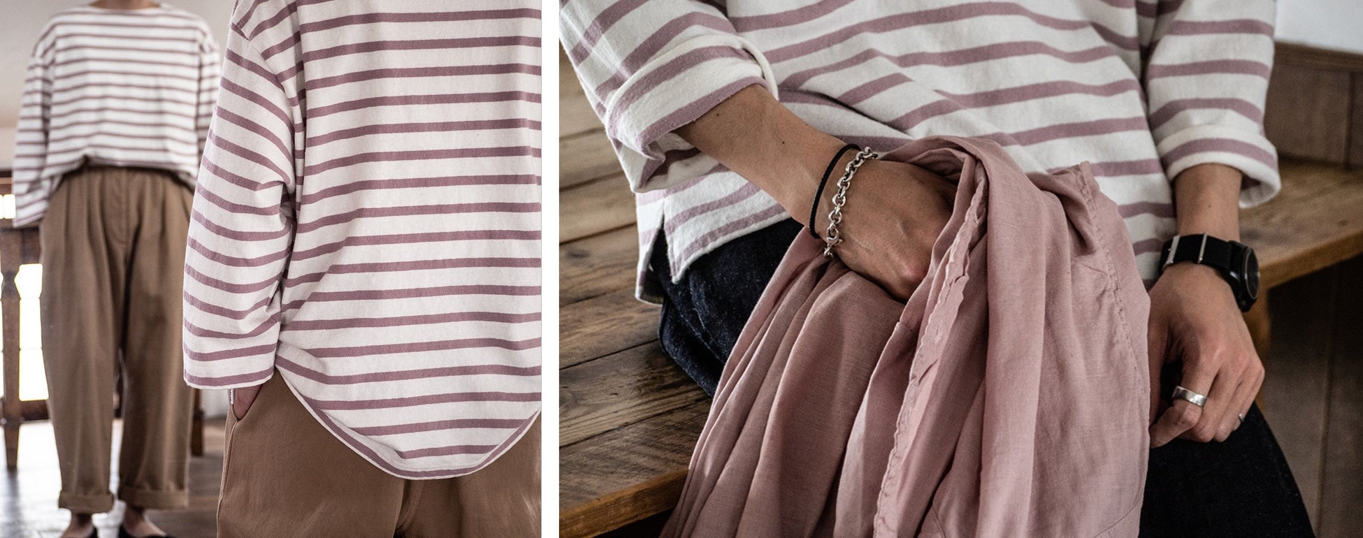 環境に優しい生産背景は勿論、日本の職人技がひかる軽やかな肌触りのバスクボーダーシャツがラインナップ致します。