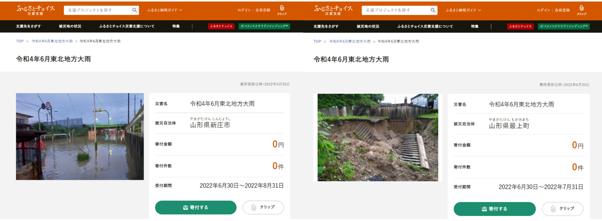 - □■ 「ふるさとチョイス災害支援 令和4年6月 東北地方大雨」の概要 ■□