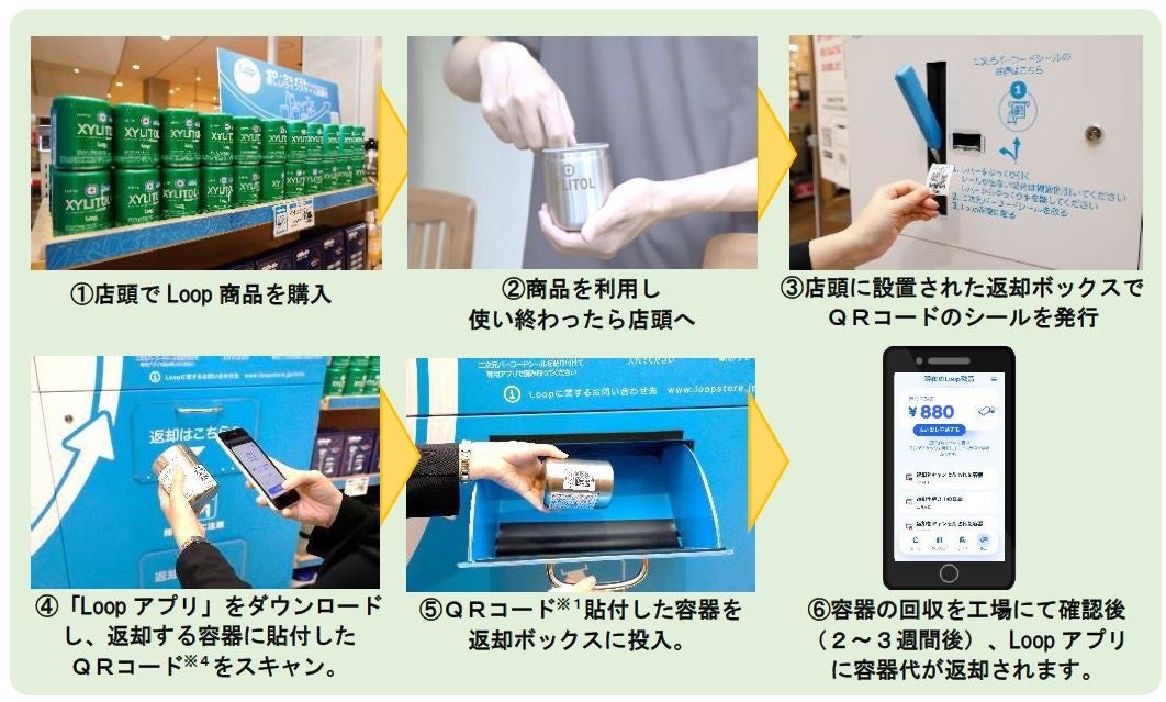 Loopはグローバルに展開するソーシャルエンタープライズである米テラサイクルが開発し、従来、使い捨てされていた洗剤やシャンプーなどの日用消耗品や食品などの容器や商品パッケージを、ステンレスやガラスなど耐久性の高いものに変え、繰り返し利用を可能にすることで使い捨てプラスチックを削減する新たな商品提供システムです。