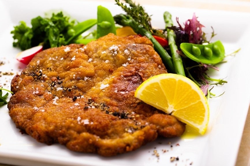 ヨーロッパ諸国の料理を提供する同店から、カリッとした衣の食感が楽しめるドイツ版ポークカツレツのシュニッツェルが登場。叩いて伸ばして揚げた豚ロースを、口どけの良い岩塩で味付けしています。今回特別に新鮮な春野菜を添えて、“春の丸の内”を表現。