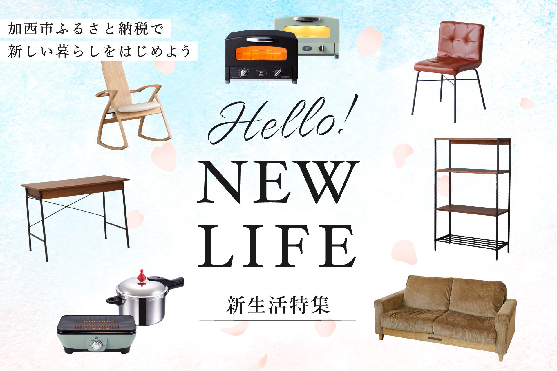新生活特集ではキッチン用品や雑貨・家電・インテリア家具など、新生活に必要なアイテムや役立つ商品を多数ご紹介しています。新生活を準備万端でスタートするために、 加西市の新生活特集を是非お役立てください。