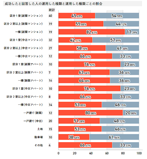 しかし、成功率では48.84%とそれほど高くはありませんでした。間口が広い分、良くも悪くも成功する物件に出会える確率はほぼ半々と思った方がよいでしょう。