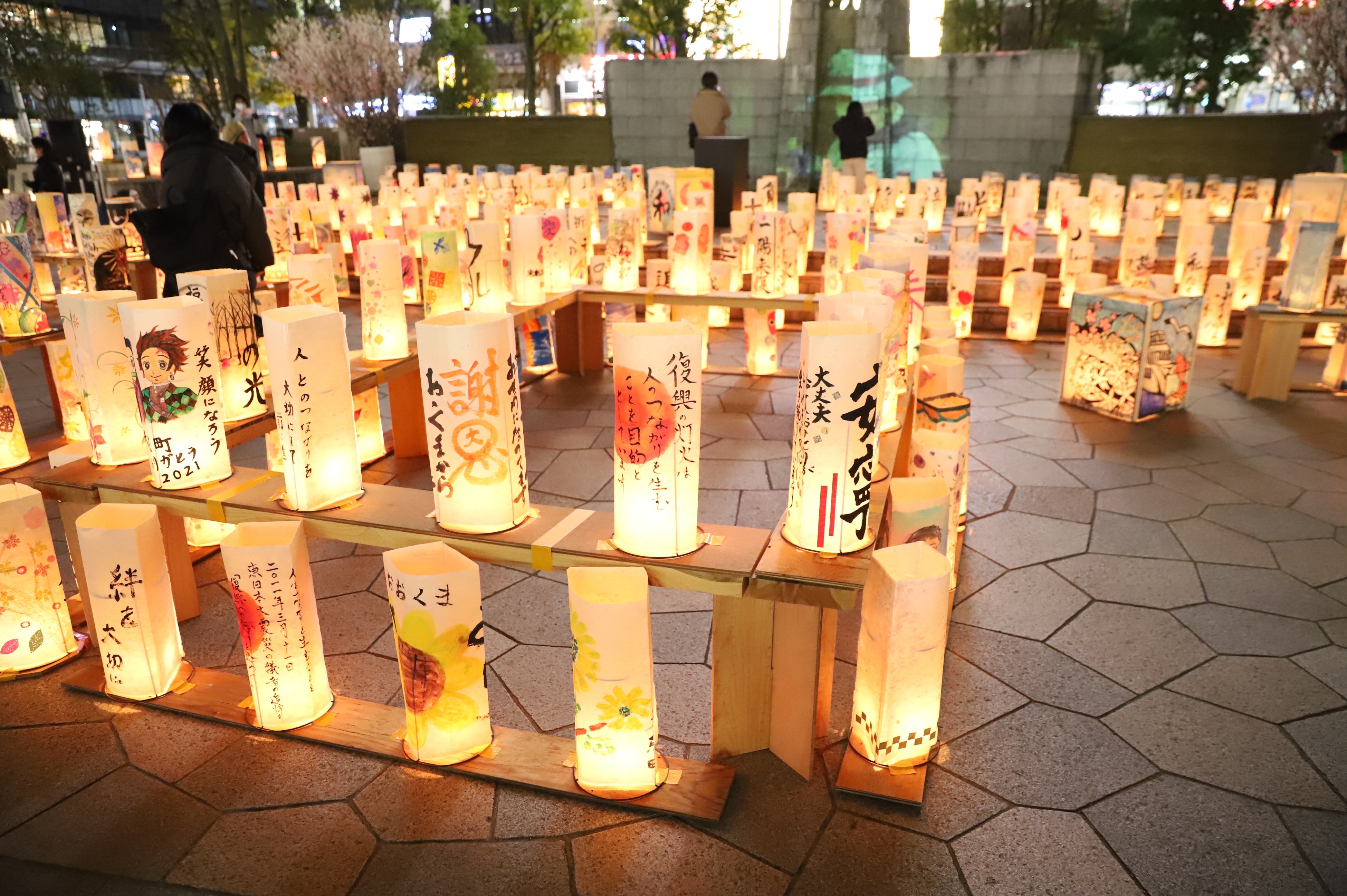 当日は郡山駅西口駅前広場において東日本大震災の犠牲者への追悼と鎮魂、復興を祈念して海老根伝統手漉和紙(2003年 福島県伝統的工芸品 指定)を使用した灯ろう約500基を展示します。同会場で福島県県中地方振興局主催の「キャンドルナイト」も開催され、キャンドル約600個が併せて展示されます。