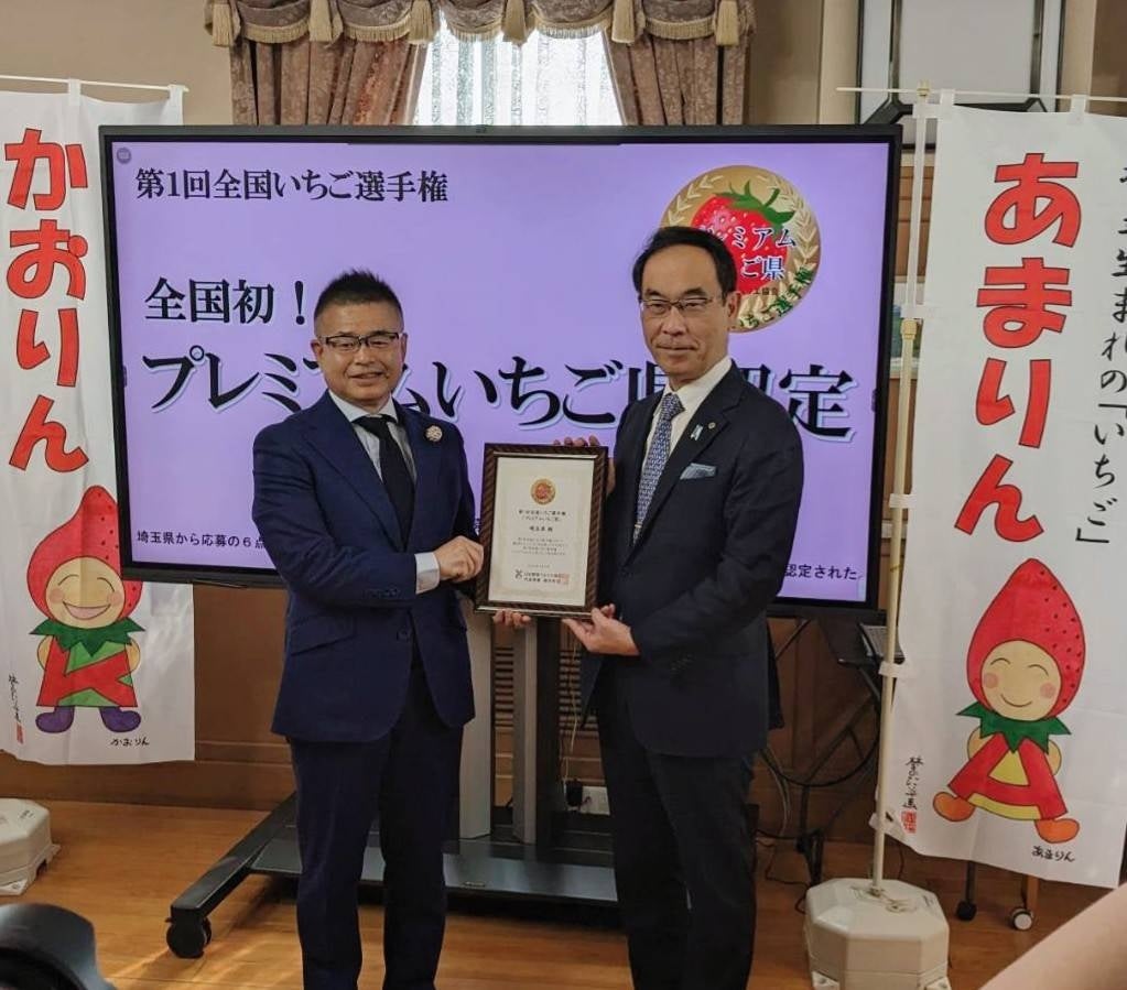 「第 1 回いちご選手権」において県内の生産者が最高金賞の受賞を含め6点が入賞したこと、さらに今回の「プレミアムいちご県」の認定を受けたことで二重の歓びである。この「プレミアムいちご県」の認定を行政としてしっかりとPRし、今後もおいしいいちごを消費者にお届けしていきたい。
