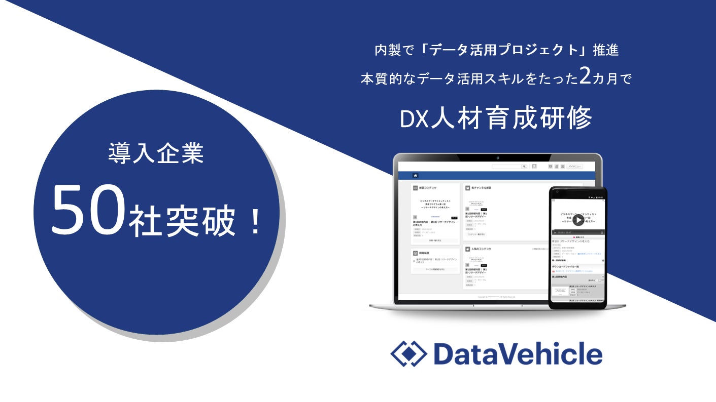 データビークルでは、データ活用を進めていくためには、ビジネス現場にいる人材自身がプログラミングなどの分析技術を身に着ける前に、まずデータ活用プロジェクトの全体像を理解し実行できることが重要であると考え、分析目的の設計から施策立案までのデータ活用プロジェクトを疑似的に経験できるDX人材育成研修サービスを開始いたしました。それ以来、ビジネス現場の人材がデータ活用プロジェクトを疑似体験できることの価値やデータの民主化にご共感いただき、商社や金融、ITや小売、不動産など様々な業界の企業様にご導入いただきました。