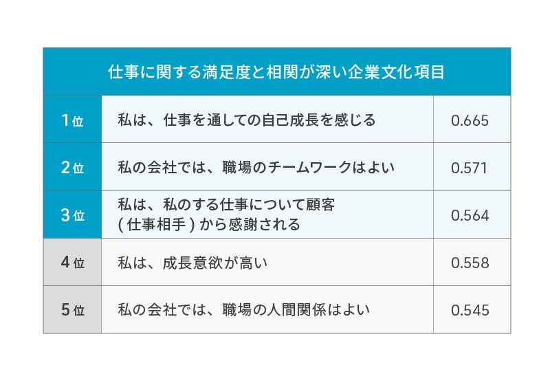 1.良い文化が醸成されている企業で働く人は、仕事への満足度が高い
