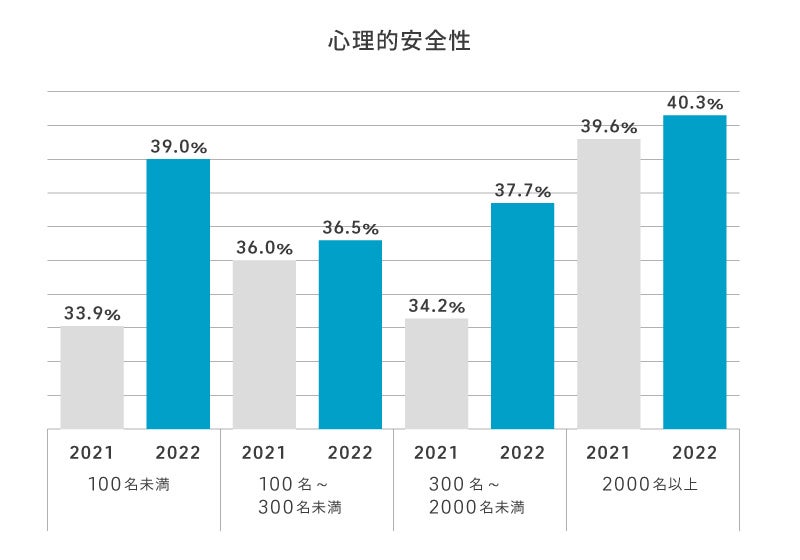 2.あらゆる規模の企業で、心理的安全性が微増した