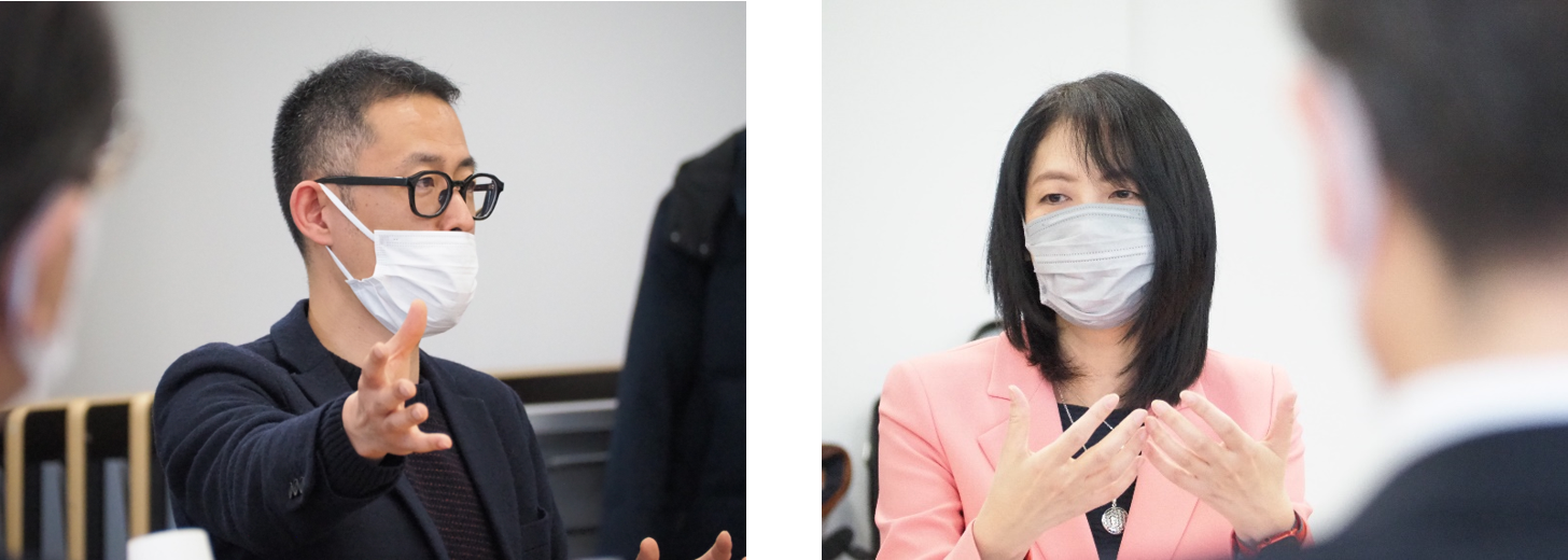 授賞式後に行われた意見交換会では、「社会課題解決の思いと収益性へのこだわりをもって働く若手を育成するには」をテーマに各社の取り組みや企業が取り組むべき施策について、受賞企業の2名と審査員4名による議論が行われました。
