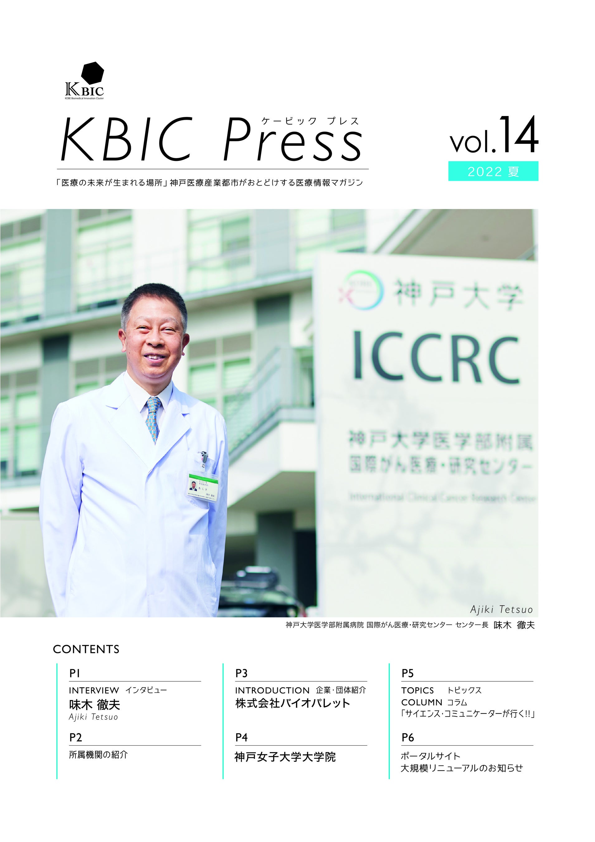 神戸医療産業都市推進機構(理事長:本庶 佑)では、年に4回、神戸医療産業都市で活躍する方々のインタビューや最新情報をお届けする情報誌「KBIC Press」を発刊しています。