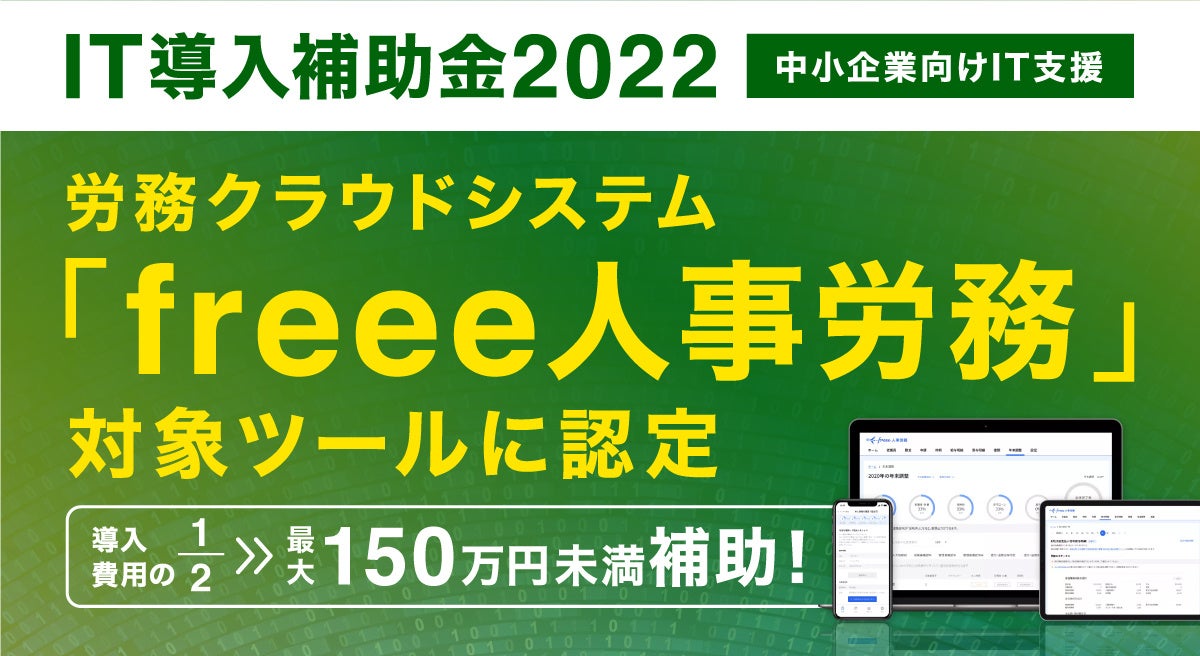 経済産業省が管轄する「IT導入補助金2022」は、中小企業・小規模事業者等を対象とした補助金制度です。補助対象となる企業が「freee人事労務」を導入いただく場合、導入費用の2分の1の補助金交付を受けることが可能です。