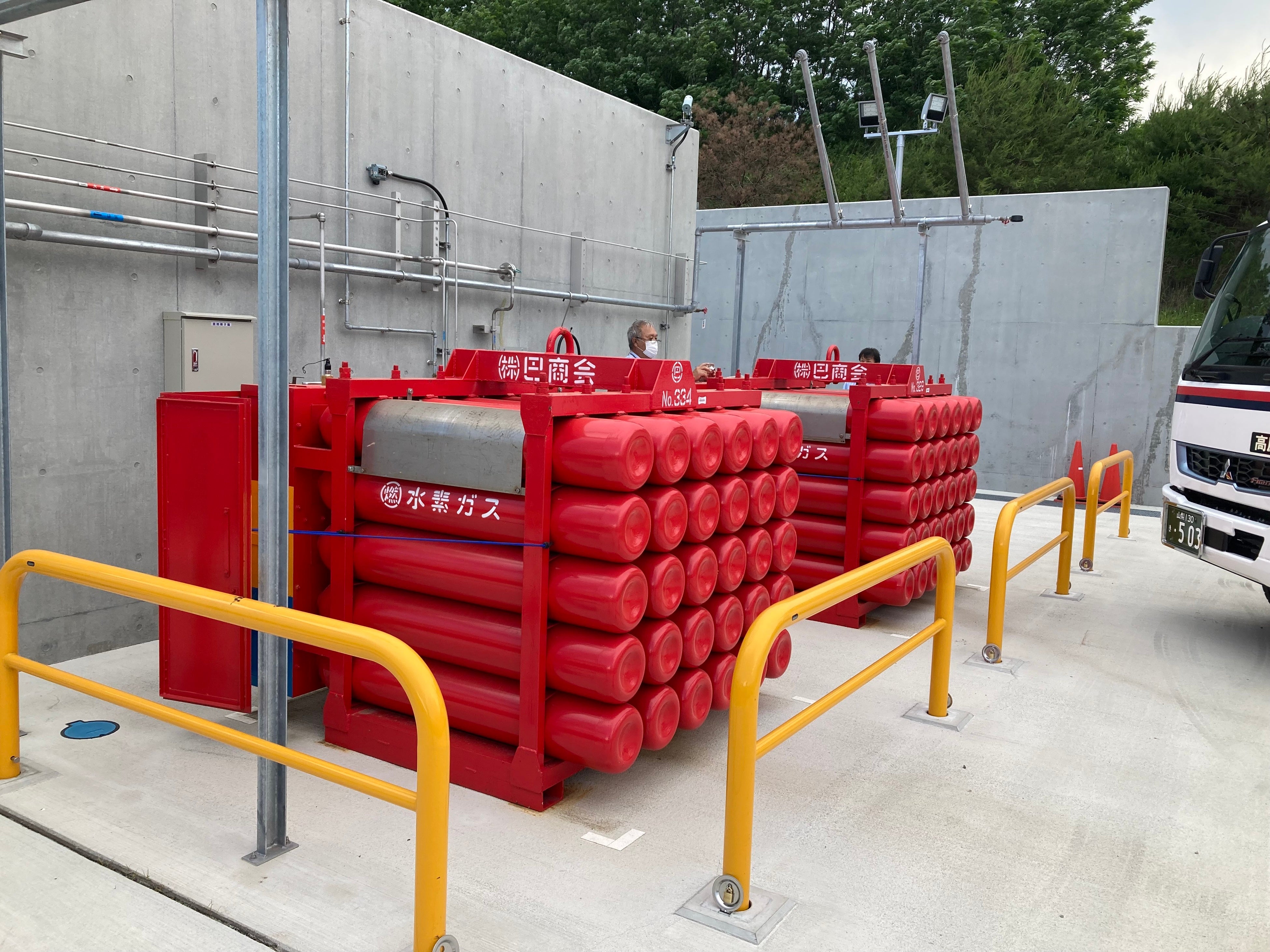 弊社は、この実証事業において、山梨県の水素エネルギーの製造・貯蔵の拠点である「米倉山電力貯蔵技術研究サイト」において、高圧水素ガスの製造設備並びに2022年4月からは分散型の水素出荷が国内に普及することを想定した水素品質の確認・維持に関する共同研究に参画しております。