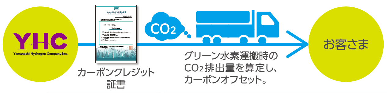 山梨県は、YHCが製造する水素の製造方法を個別に確認し「グリーン水素証書」を発行しますので、これによって弊社の持つ全国最大の水素サプライチェーンの中でグリーン水素の価値を個別に提供していきます。