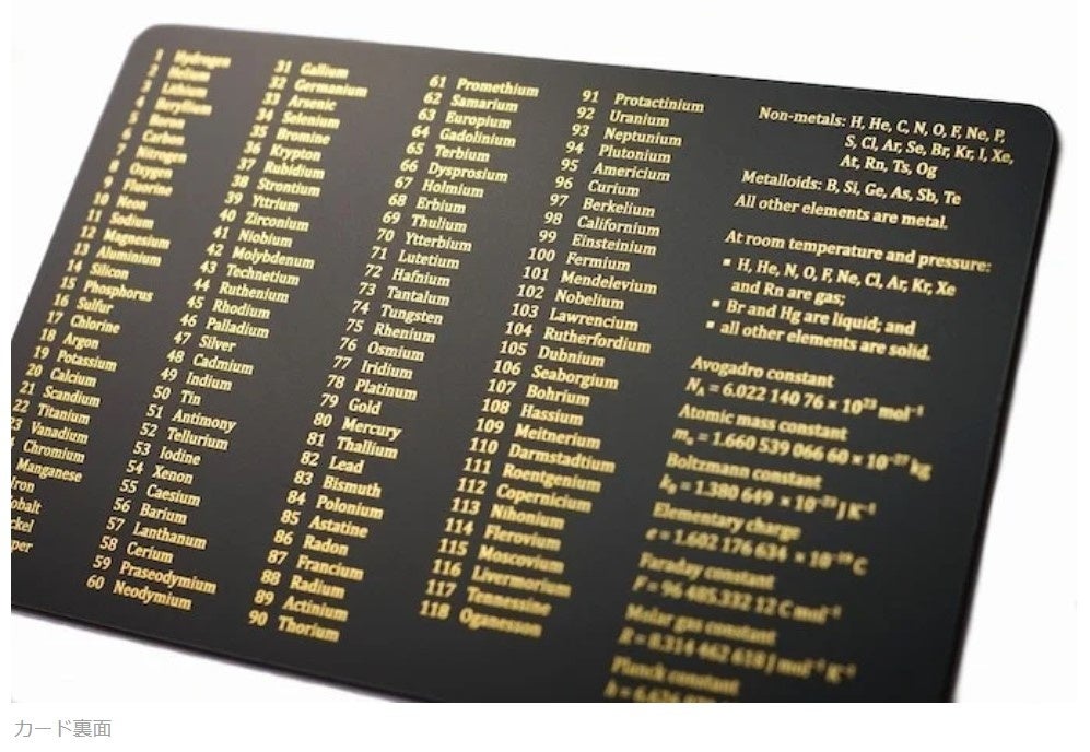 The Chemistry Card 2.0は、クレジットカードサイズのコンパクトな周期表です。