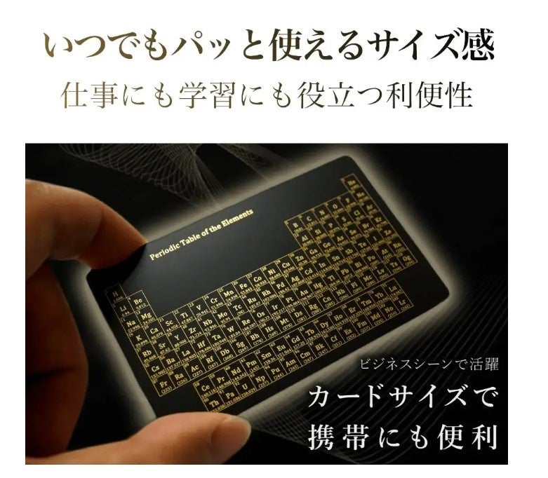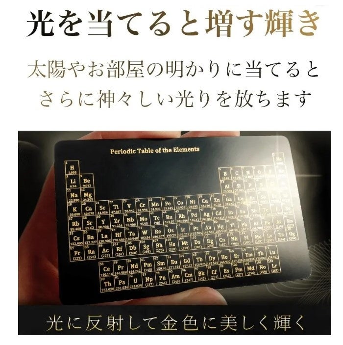 ◆台湾に拠点を構える「Minute Objects」から、高級感あふれる元素の周期表【The Chemistry Card 2.0】が登場!高級感あふれる美しいデザイン◆デスクや本棚のインテリア、大切な人への贈り物にもお勧め、Real estate Reap advanceがCAMPFIREにて3月12日~4月25日まで販売中です!https://camp-fire.jp/projects/view/644164?utm_campaign=cp_po_share_mypage_projects_show 理系出身者や化学好きなら眺めているだけでワクワクしてくる『元素の周期表』。残念な事に世の中の周期表は可愛いデザインの物ばかり…もっとスタイリッシュでカッコイイ周期表が欲しい!そんな声に応えるべく、私たちは化学を愛するすべての大人のために、「大人に相応しい元素の周期表」を作り上げるました。それが大人が手に入れたくなる唯一の周期表【The Chemistry Card 2.0】耐久性のある黒メッキの真鍮製造に元素を金字でレーザー刻印、学習用のものとは比べ物にならないほど高級感が満載です