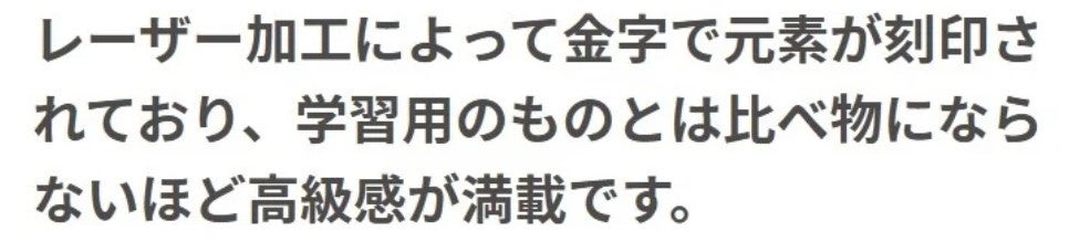 デスクやお部屋にインテリアとして飾ったり、大切な人への贈り物にしたりするのにぴったりな周期表を作り上げました。