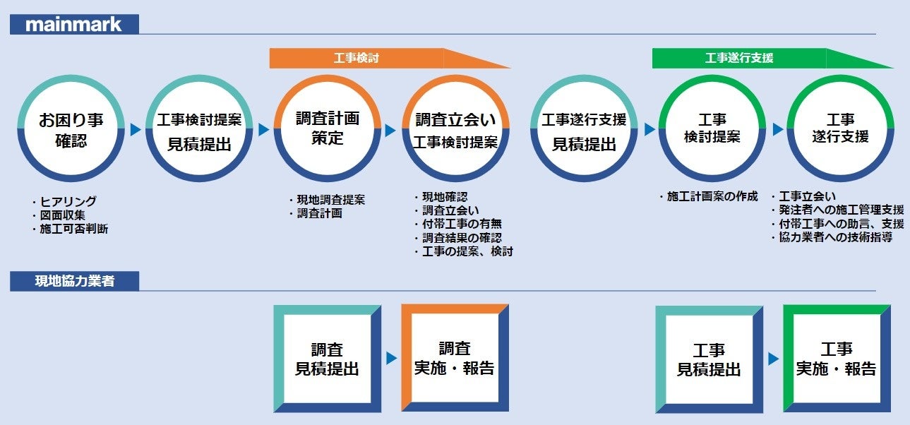 メインマーク株式会社支援のもと、調査および工事を遂行します。