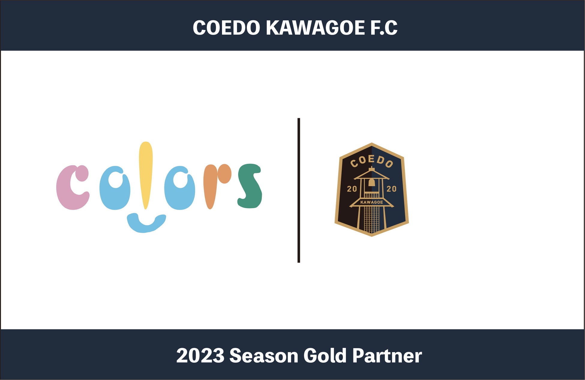 「この度、川越市を中心に外壁塗装・屋根塗装事業を行う株式会社カラーズ様とゴールドパートナー契約を更新いたしました。地域への貢献にも力を入れられている株式会社カラーズ様には、チームの上位リーグへの進出はもちろんの事、川越という地域を盛り上げる存在としてのCOEDO KAWAGOE F.Cに大きなご期待をいただいております!2023シーズンも株式会社カラーズ様とともに、川越地域への貢献にさらに力を入れて参る所存です。2023シーズンも何卒よろしくお願いいたします!」