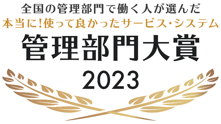 管理部門大賞2023では 国内で展開している140以上の管理部門向けサービス・システムを対象に「経理」「人事」「総務」「法務」の4部門に分けて、実際に利用して良かったサービス・システムの満足度などにポイントを振り分け、アンケート結果のみを反映する加点方式による総合得点を基準に順位を確定し選出しました。