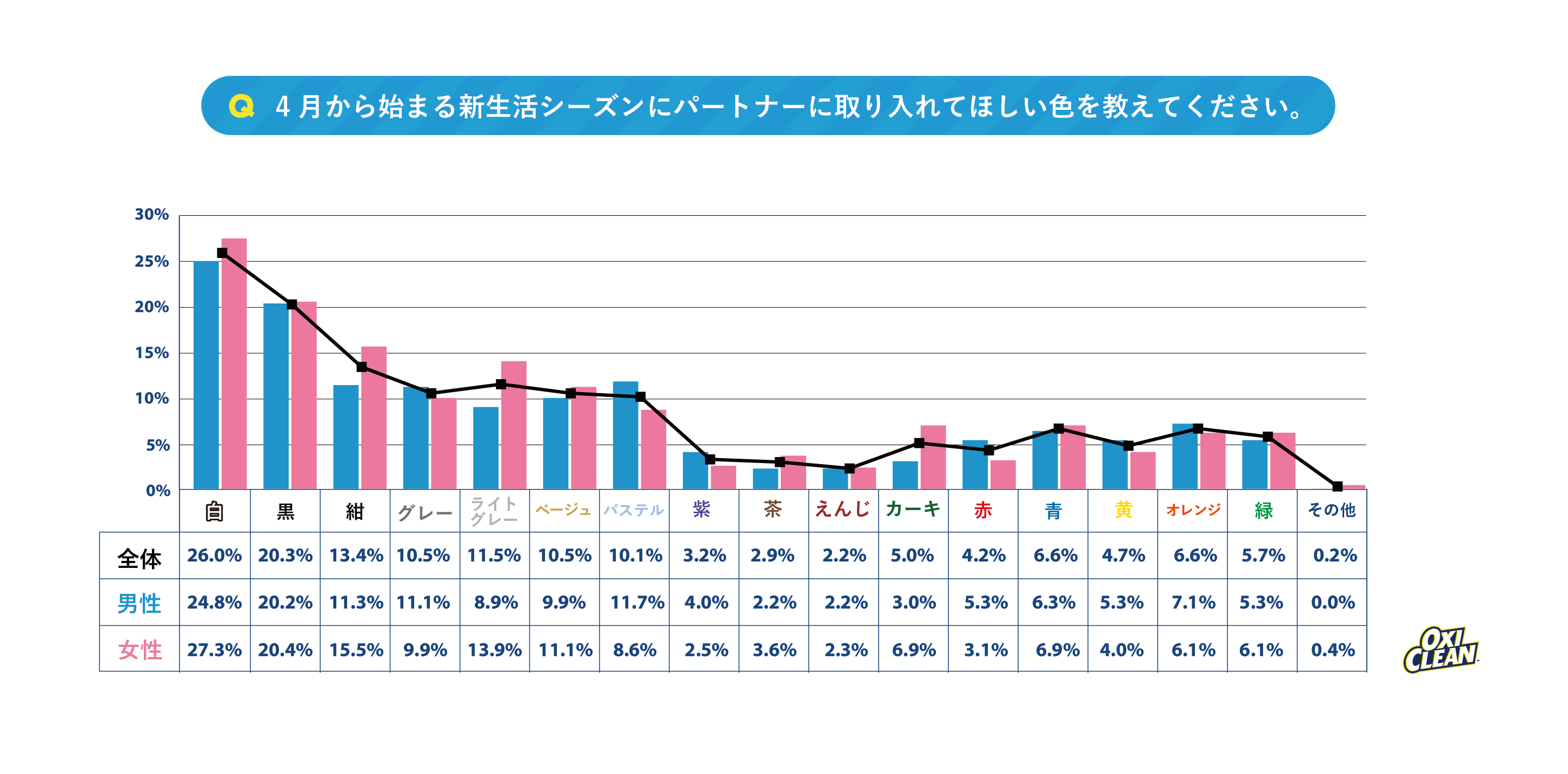 本内容の転載にあたりましては、「オキシクリーン調べ」とクレジットを付記のうえご使用くださいますよう、お願い申し上げます。